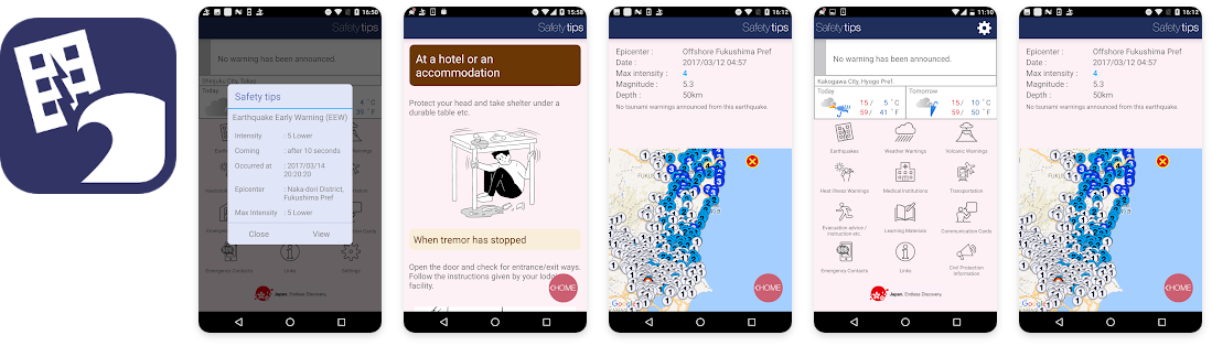 Safety tips는 관광청의 감수 아래 개발된 일본을 방문하는 외국인 관광객을 위한 재해 정보 등을 안내하는 앱입니다.